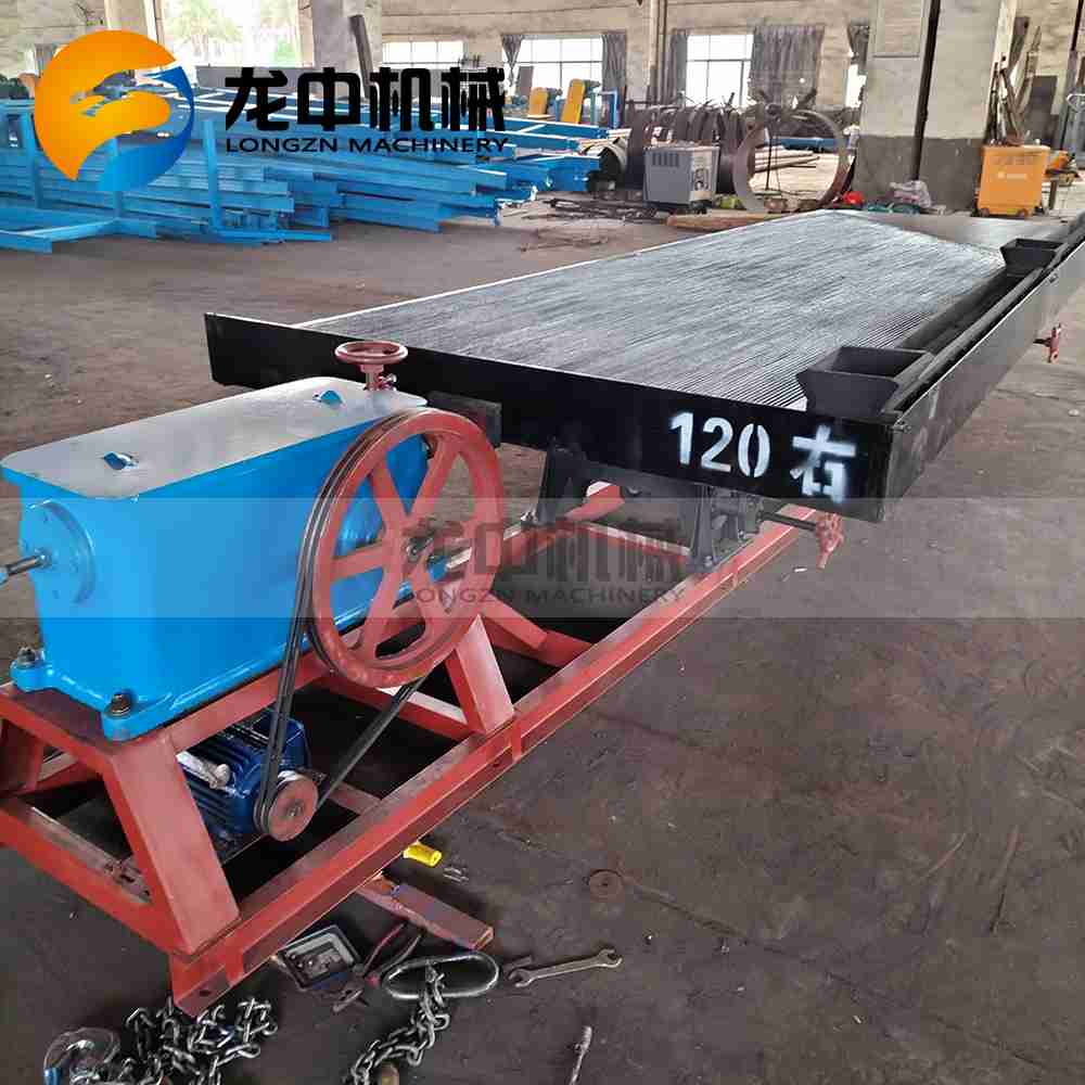 Shake table is on the lean table board with raffles. The ore material is fed in by the feeding chute upper table board; meanwhile, the water is fed by water feeder transversely. Under the impact of vibrating wave, the materials go on vertical and horizontal movement as per the different proportion and granularity. The ore material with different proportion and granularity move down in laddershipped state along with their own movement, then discharge from the fine concentrate end and tailings end, finally they are separated out to fine concentrate, middle concentrate and tailings.