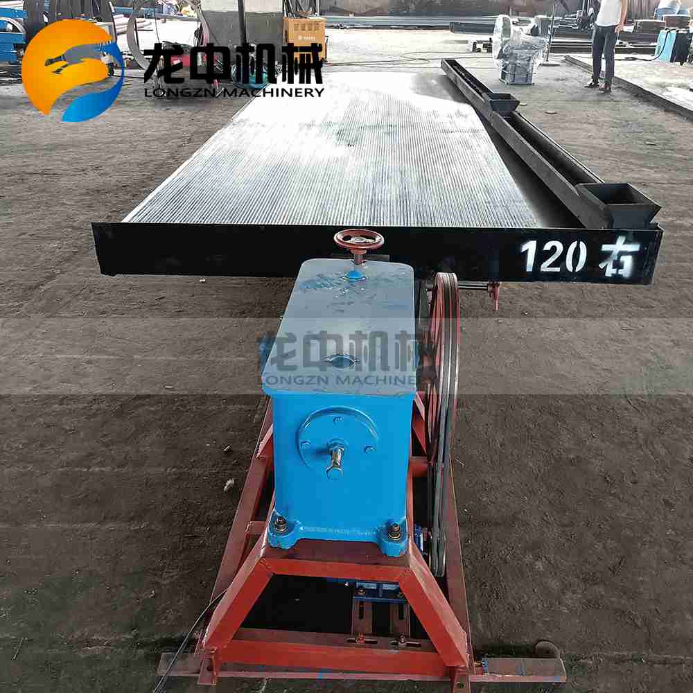 Shake table is on the lean table board with raffles. The ore material is fed in by the feeding chute upper table board; meanwhile, the water is fed by water feeder transversely. Under the impact of vibrating wave, the materials go on vertical and horizontal movement as per the different proportion and granularity. The ore material with different proportion and granularity move down in laddershipped state along with their own movement, then discharge from the fine concentrate end and tailings end, finally they are separated out to fine concentrate, middle concentrate and tailings.