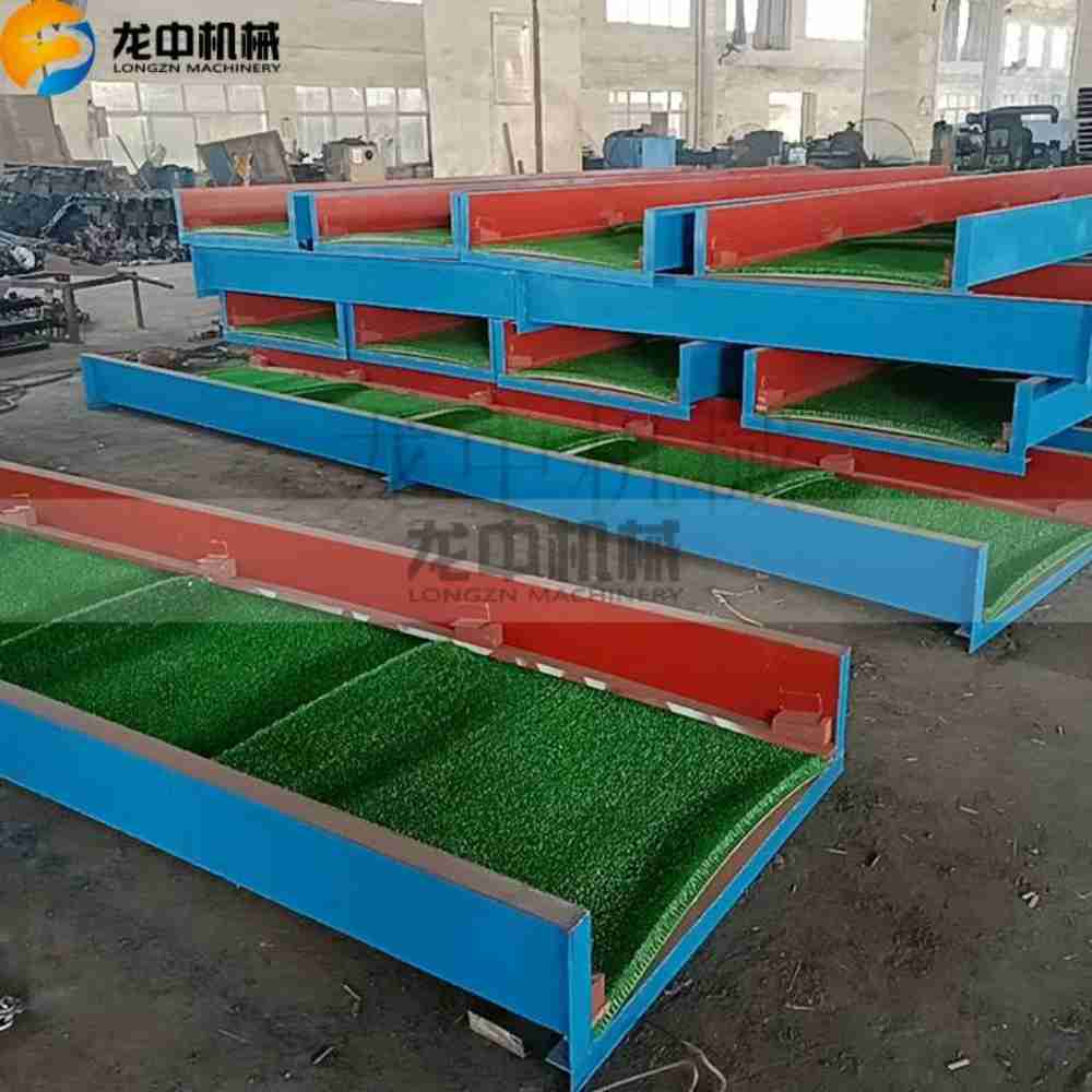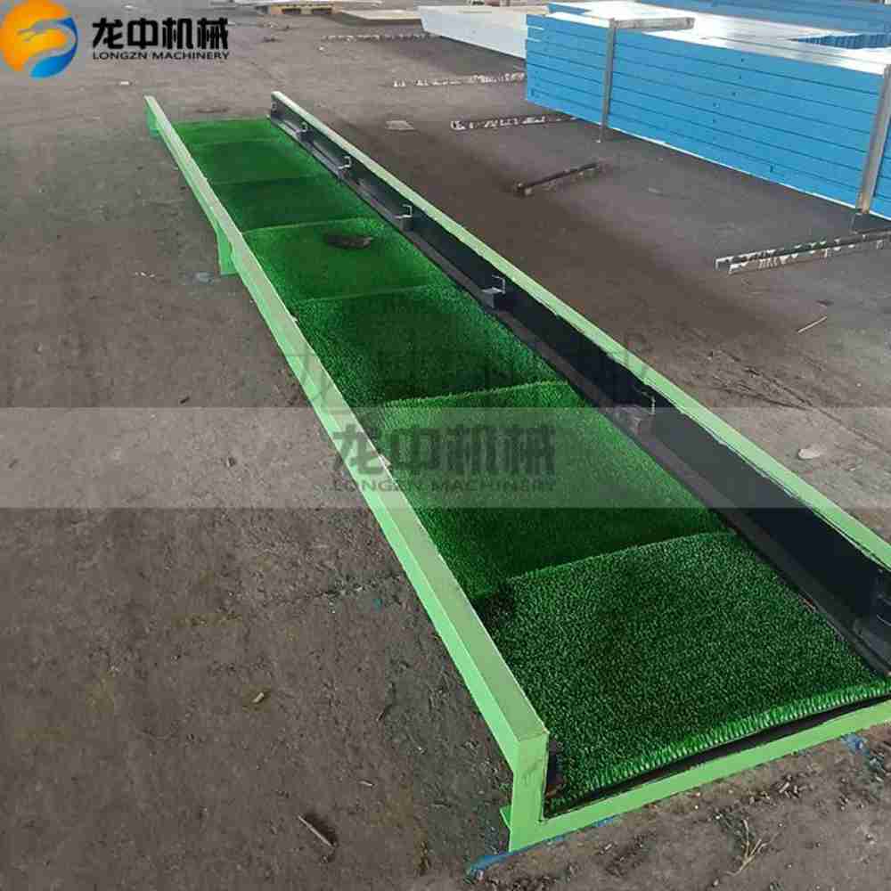 The gold particles will be trapped by the grass mat because of the large specific gravity of gold. The Gold Sluice Box works with the gold centrifugal concentrator